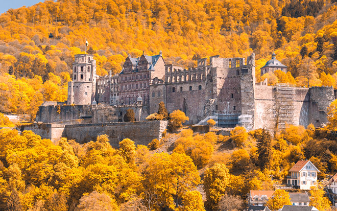 Con phố cổ Altstadt Baroque và những khung cảnh nhẹ nhàng dọc theo sông Neckar đẹp như thanh âm trong trẻo giữa trời Âu, đặc biệt là khi nhìn từ lâu đài thời kỳ Phục hưng sa thạch trên đỉnh đồi.