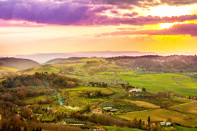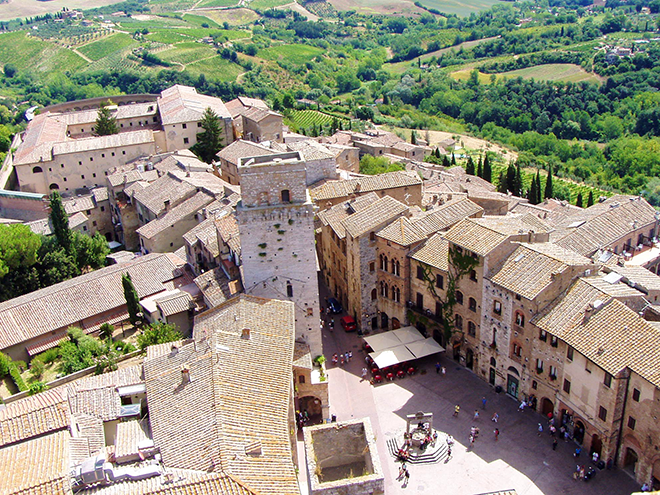 Đặt chân đến Tuscany, người lái xe đưa chúng tôi đến khách sạn ở khu nông thôn. "Thấy ngọn tháp đó chứ?" ông chỉ tay hỏi. "Đó là San Gimignano. Họ gọi nó là 'Manhattan của thời Trung Cổ' đấy. "