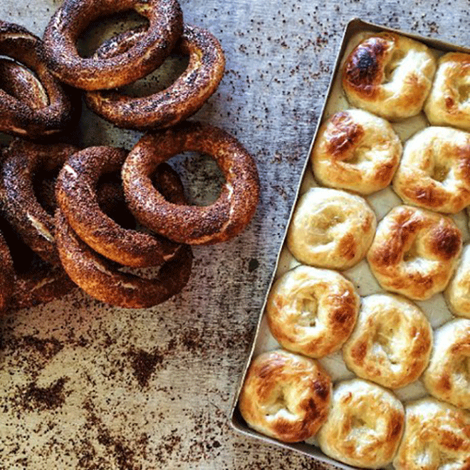 Simit là món ăn nhẹ xuất hiện từ thế kỷ 16. Những đoàn xe du lịch đến và đi từ Istanbul đã mang theo món bánh mì vòng tới thành phố Izmit. Địa danh này chính là khởi nguồn cho tên Simit và biến nó thành một loại đồ ăn nhanh. Ngày nay, simit vừa được dùng kèm trong bữa sáng vừa là món ăn phổ biến trên đường phố Thổ Nhĩ Kỳ. Bánh mì simit đặc biệt nhờ lớp vỏ giòn vàng và rắc vừng.