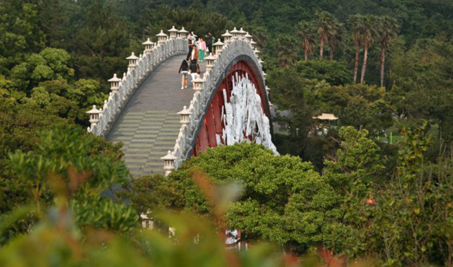Đây là một cây cầu cong hình mái vòm bắc qua thác Cheonjeyeon. Hai bên cầu được trang trí bởi tác phẩm điêu khắc 7 nữ thần sông núi trong thần thoại Hy Lạp.