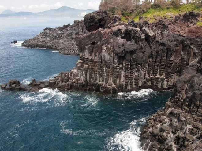 Khi dung nham từ núi Hallasan đổ ra biển, dòng dùng nham bị nguội bất ngờ và đông cứng lại, tạo thành những cột đá hình trụ màu đen, được biết đến với cái tên mỏm đá Jusangjeolli.