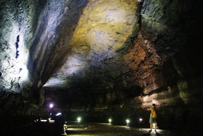 Trong hang đá còn có một số loại động vật cư trú, chẳng hạn như dơi, nên bạn đừng ngạc nhiên khi nghe tiếng đập cánh của chúng nhé! Mặc dù hang động nham thạch này dài hơn 13km nhưng du khách chỉ được khám phá 1km thôi. Nhiệt độ trong hang giao động trong khoảng 11-21 độ C. Hang có trần cao từ 5-10 mét. Sàn đá khá trơn nên bạn nên mang giày có độ bám chắc một chút, vì bạn sẽ không muốn “chụp dơi” trong bóng tối đâu !