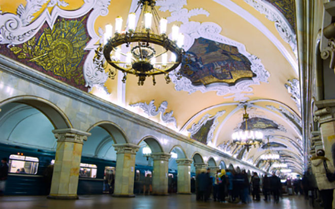 5. Hệ thống nhà ga điện ngầm ở Moscow được xem là đẹp nhất thế giới. Những nhà ga với hơn 80 năm tuổi nơi đây giống như triển lãm nghệ thuật hoặc nhà thờ cổ kính hơn là trạm trung chuyển giao thông.
