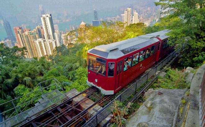 Thông thường, có 2 cách để lên đỉnh núi là đi xe bus và tàu điện gỗ (tram), trong đó tram là phương tiện phổ biến nhất. Hệ thống tàu điện gỗ trên đỉnh The Peak có tuổi đời lên tới 120 năm nhưng vẫn bền bỉ chở khách ngược xuôi lên xuống mỗi ngày. Ước tính đã có tới 10 triệu người trên toàn thế giới đã từng có mặt trên chuyến tàu cổ kính này ở đặc khu Hong Kong. Với độ dốc khá lớn, đi dọc theo tuyến đường hai bên phủ đầy cây cỏ, nhìn ra những tòa nhà, vịnh biển, trải nghiệm tàu điện là điều không được phép bỏ qua khi tới đây.