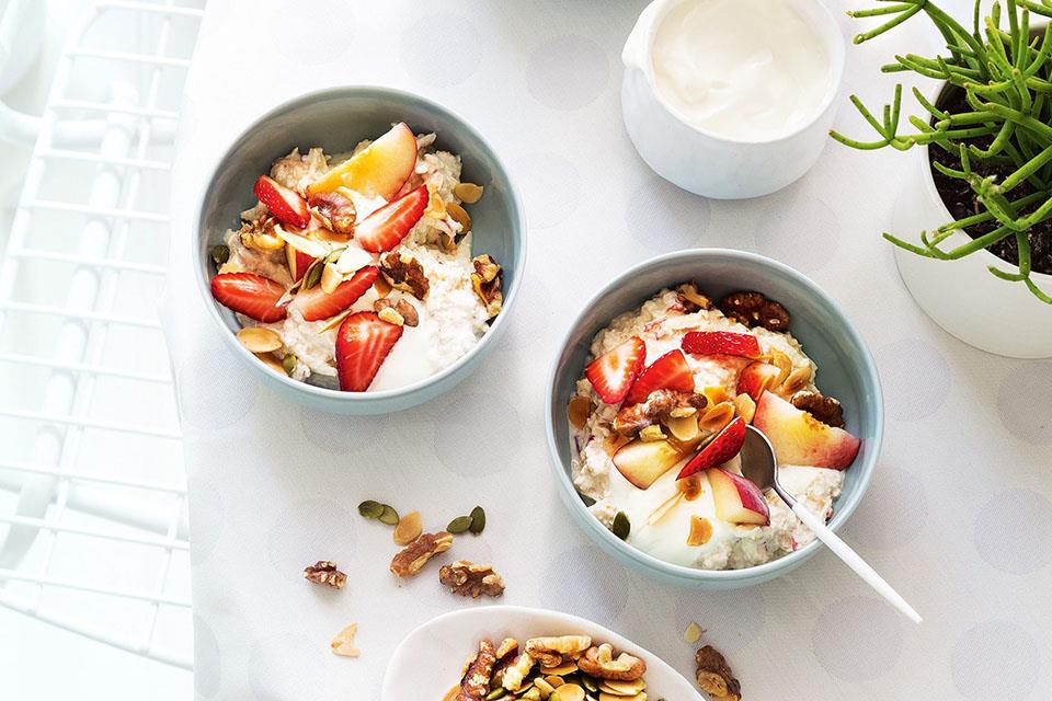 Món ăn giàu dinh dưỡng này được tiến sĩ Maximilian Bircher-enne người Thụy Sĩ phát minh vào khoảng năm 1900 bởi ông tin rằng một chế độ ăn uống với các loại ngũ cốc, trái cây và rau quả là tốt cho sức khỏe hơn việc ăn thịt hàng ngày. Birchmuesli là sự kết hợp của yến mạch cán, trái cây, các loại hạt, nước cốt chanh và sữa đặc (hoặc sữa chua) và đầu tiên được dùng cho các bệnh nhân trong viện điều dưỡng Zurich. Cho đến ngày nay, món ăn này đã nhận được sự hưởng ứng của hàng triệu người ở khắp các quốc gia trên thế giới, không chỉ dùng cho bữa sáng mà còn cho bữa tối nữa.