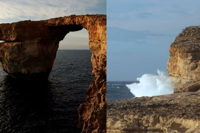 Cổng vòm đá Azure Window nổi tiếng là biểu tượng du lịch của đảo quốc Malta bất ngờ đổ sụp xuống biển sau trận bão lớn. Được biết, địa danh này đã xuất hiện hàng nghìn năm nay và là một trong những điểm đến hấp dẫn nhất ở đảo quốc này.