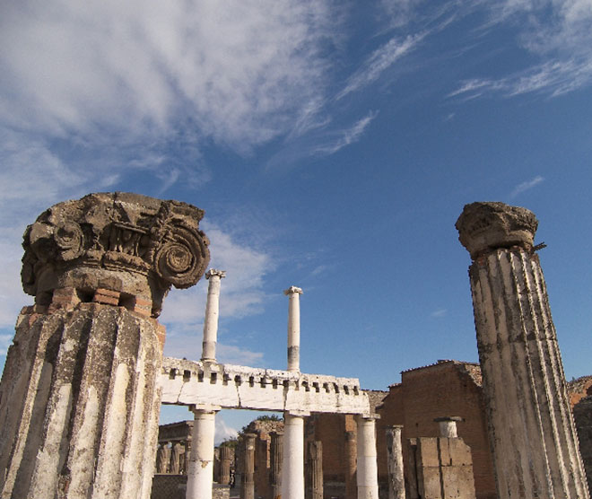 Như nhìn qua một chiếc hộp chiếu hình, mỗi góc của Pompeii là mỗi hình ảnh khác nhau, không liền mạch nhưng sống động đến tưởng chừng đang thấy rõ cả hơi thở trong đời sống thật. Quá khứ và tương lai đan xen lẫn nhau trong cùng một ánh nhìn. Bạn sẽ thấy những cột Dorin ngày nào vẫn vững chãi vươn lên như muốn chạm trời xanh; đấu trường, nhà hát, diễn đàn, đền thờ, biệt thự của người giàu, nhà dân và thậm chí cả căn phòng bé tum hủm của nhà thổ… vẫn hiển hiện ngay trước mắt bạn và bạn vẫn có thể đưa tay chạm vào. Nhưng hiện tại vẫn là lớp chắn trong suốt ngăn bước bạn quay trở về quá khứ. Hiện tại sẽ cản đường bạn bằng những lớp dung nham đã từng dày tới 25m, từng nuốt chửng mỗi căn nhà, mỗi sự sống. Hiện tại nhắc nhở bạn bằng những vết thời gian trên tường lở lói, những hoang phế chẳng bao giờ phục chế nổi. Hơn hết, hiện tại đông cứng trong lớp thạch cao để lưu giữ, định hình quá khứ tro tàn được đổ khuôn bằng dung nham nóng chảy khi xưa.