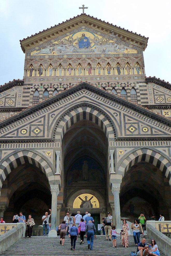 Bờ biển Amalfi nổi tiếng bởi những đường mòn trên núi men theo biển. Núi cao Amalfi cũng cho bạn cảm giác đang trôi giữa muôn dải trắng như Capri tuy nhiên Amalfi hoang dã hơn và bàn tay con người có vẻ ít sắp đặt ở đây hơn. Nắng Amalfi không sáng rực lên như ở Capri, đôi lúc nghỉ lại ven đường thấy nắng màu hổ phách chảy qua mấy tầng lá rơi xuống ngọt như mật ứa ra từ quả mơ chín mọng vương trên môi thiếu nữ. Hoa dại được cài khắp nơi trên suối tóc cỏ, hoa dại nhưng vẫn đẹp lộng lẫy và duyên dáng đến nao lòng. Cây và cỏ xanh trải đệm cho những mảng núi hoa tím ngát hay vàng mê mải. Eo núi được thắt thêm bởi những đoạn bậc thang mềm mại, trên mỗi bậc là những vườn nho xanh rợp…