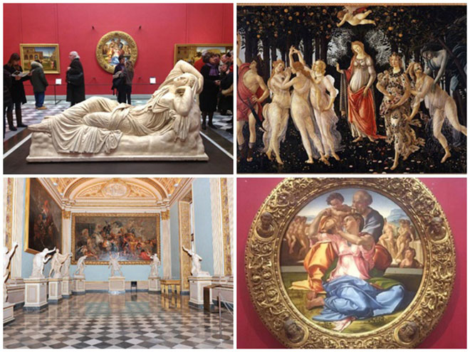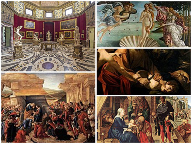 Tên tuổi của các bậc thầy được triển lãm bên trong tòa nhà Uffizi hình chữ U này được coi là những người nổi tiếng của nghệ thuật thời Phục hưng. Nơi đây trưng bày các tác phẩm theo chuyên đề của Botticelli, da Vinci, Raphael và Rembrandt trong một bộ sưu tập trải dài 6 thế kỷ. Phòng trưng bày Uffizi độc đáo ở chỗ nơi đây chỉ lưu giữ những kiệt tác. Nhiều người công nhận bảo tàng này là có bộ sưu tập nghệ thuật phương Tây quan trọng nhất trên thế giới.
