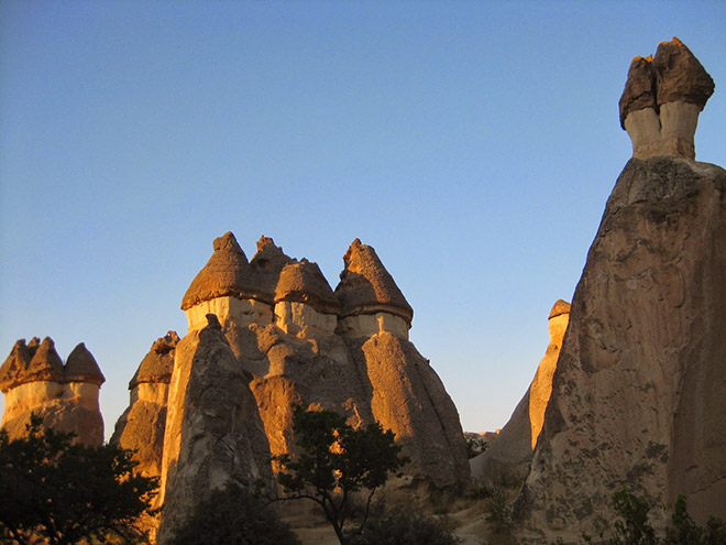 Những thung lũng đẹp nhất của Cappadocia nằm ở giữa Göreme và Çavusin. Ở đây, các mặt đá lượn sóng uốn lượn với xung quanh với vô số hình thù màu sắc như hồng, vàng, cam được hình thành bởi những lần núi lửa phun trào, phong hóa cũng như xói mòn. Giữa những vách đá là những khu vườn tươi tốt và ruộng rau vẫn được các nông dân địa phương trông nom trong khi những hình thù trên đá đc trạm khắc bởi những tu sĩ vô danh có niên đại từ thời Byzatine.