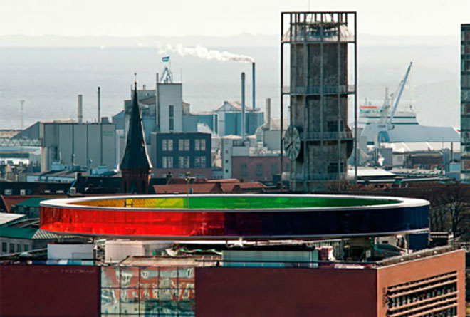 Công trình có đường kính 52m này nằm trên mái của một bảo tàng nghệ thuật của thành phố. Nó được làm từ nhiều miếng kính lớn với màu sắc khác nhau, chạy đúng theo thứ tự 7 sắc cầu vồng: đỏt, da cam, vàng, lục, lam, chàm, tím.