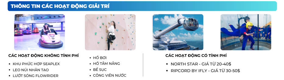 - Y tế 24/7: Trung tâm y tế trên tàu (Medical Center) luôn túc trực với trang thiết bị hiện đại.