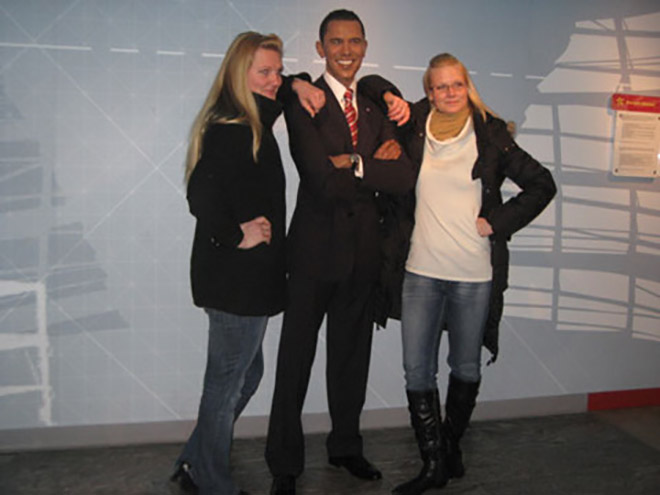Nhiều du khách thích thú được chụp hình cùng bức tượng sáp Tổng thống Mỹ Barack Obama