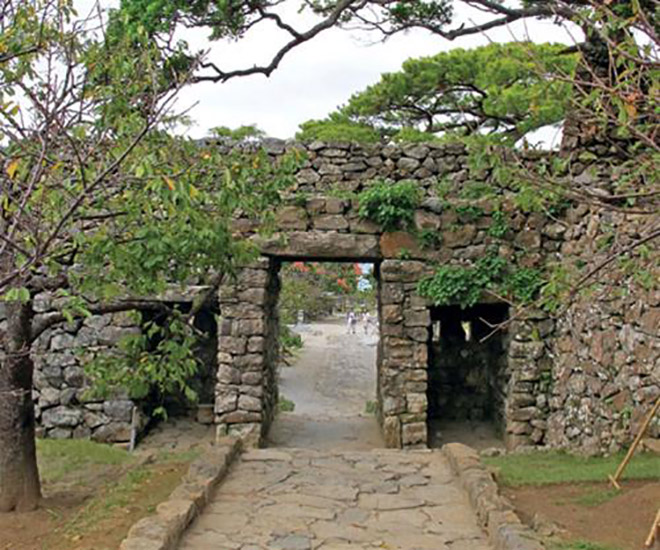 Các tòa thành Nakijin, Zakimi, Katsuren, Nakagusuku, Shuri... cùng với cổng đá Sonohyan-Utaki, lăng Tamaudun, vườn Shikinaen, di tích Seifa-Utaki... ở phía nam đảo Okinawa là những chứng tích sống động của thời kỳ hoàng kim và thịnh trị của vương quốc Lưu Cầu. Quần thể di tích kiến trúc này đã được UNESCO công nhận là di sản văn hóa thế giới vào năm 2000 và trở thành điểm du lịch hấp dẫn.