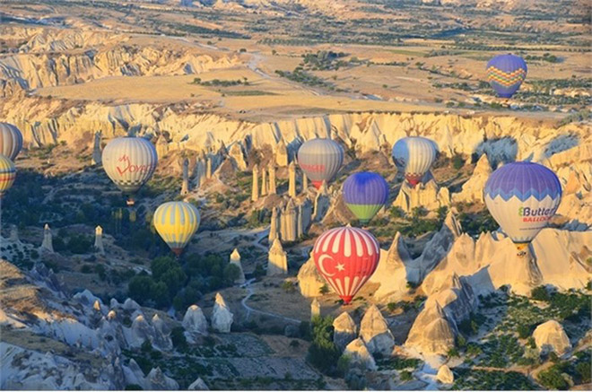 Du khách đến tham quan ngày một nhiều: Vùng đất Cappadocia với thung lũng hình thành bởi đá núi lửa, những khe nứt, là những cột đá hình nấm sinh động. Du khách có thể di chuyển bằng khinh khí cầu trong buổi sáng mai ngắm nhìn từ trên cao những cột đá hình nấm đang bừng lên trong ánh bình minh.