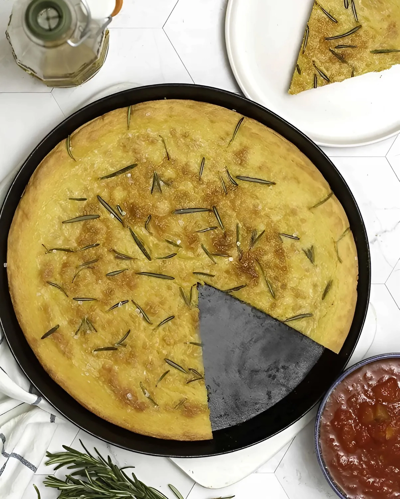 Hòa tan men bia trong một ít nước ấm. Sau đó trộn với bột mì thêm chút nước. Nhào cho đến khi bột trở nên mịn và bạn cảm nhận được miếng bột trở nên đàn hồi. Để bột nghỉ trong 1 tiếng rưỡi với một chiếc khăn vải. Sau đó lăn bột lên chảo nướng (đã phết dầu ô liu trước đó) và rắc phần dầu, muối còn lại. Độ dày của focaccia nên khoảng 2 cm. Cuối cùng, nướng khoảng 20 phút ở 180 độ.