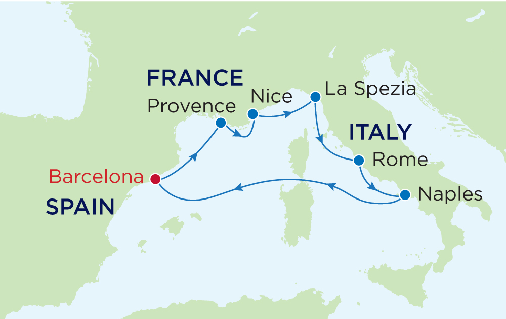 18:00 Du thuyền rời bến. Hành trình tiếp tục đến thành phố NICE xinh đẹp vá quyến rũ của Pháp. Hàng loạt các chương trình ảo thuật, khiêu vũ tập thể, phim bom tấn và game show vui nhộn liên tục trong ngày. Quý khách sẽ thỏa thích với ‘thế giới ẩm thực’ đa dạng, phong phú.