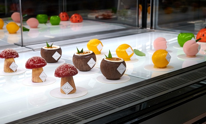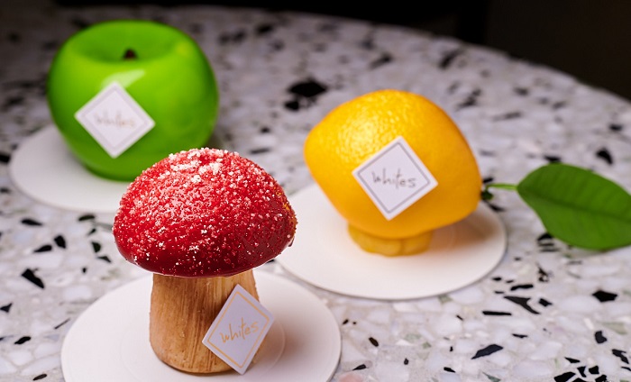 Lần đầu thực khách bước chân vào Whites sẽ không khỏi ngỡ ngàng trước bộ sưu tập trái cây đa dạng đa màu sắc của quán. Những loại hoa quả thoạt nhìn không khác gì đang được trưng bày trong quầy trái cây lại chính là các món bánh béo ngậy và ngọt lịm, được chế biến khéo léo dưới bàn tay của thợ làm bánh mang đến tác phẩm có độ tinh xảo và chân thật nhất có thể. Món ăn nổi tiếng nhất của quán là bánh hình nấm với phần thân bên ngoài làm từ sô cô la, bên trong chứa đầy kem vani, mứt mâm xôi và quả anh đào. Nếu đã đến Whites thì đừng quên trải nghiệm hương vị thơm ngon khó cưỡng của món “best-seller” này trước khi tiếp tục khám phá các loại quả độc đáo khác của quán.
