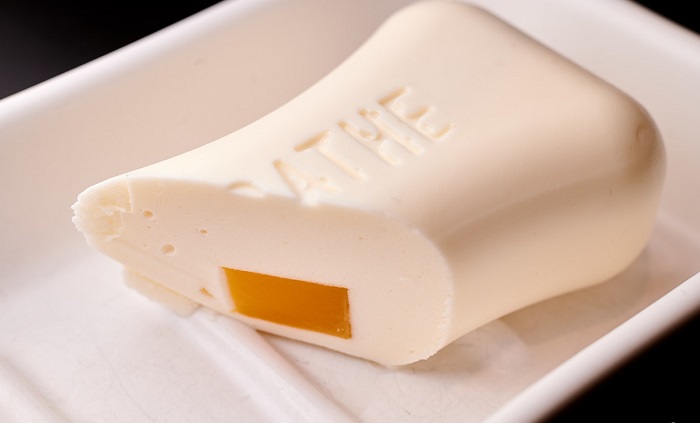 Nghe có vẻ kỳ lạ nhưng thực tế đây chính là món ăn chủ chốt trong thực đơn của Bathe Coffee, món bánh tráng miệng hình bánh xà phòng với đủ màu sắc và hương vị khác nhau từ màu tím của hoa oải hương cho đến màu trắng của dừa và phần nhân bên trong là các loại trái cây tương tự như bánh ngọt hình hoa quả của Grolet. Điểm khác biệt duy nhất của những bánh xà phòng này với các loại bánh trái cây đó là phần vỏ có kết cấu đặc và cứng hơn, nguyên liệu còn có sự kết hợp của bột rau câu để tạo thành hình khối khác với xu hướng nặn tạo hình phức tạp của bánh trái cây.